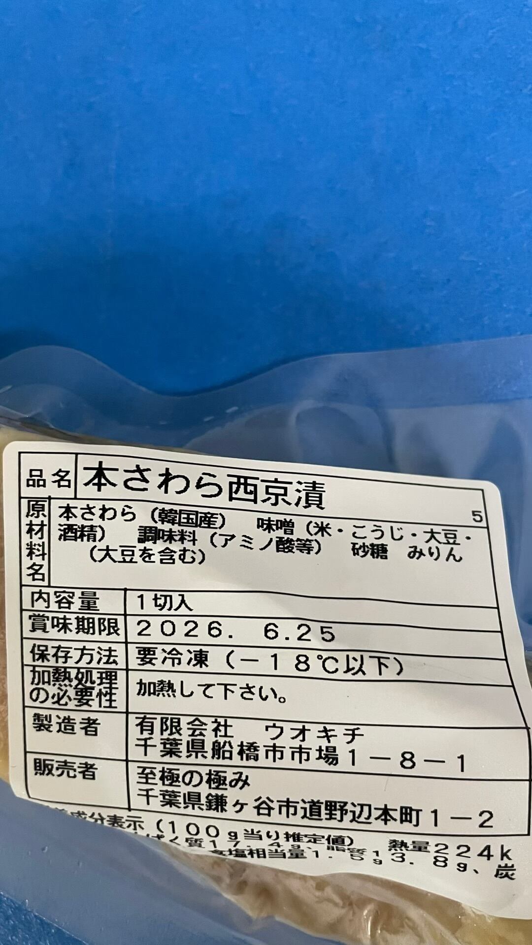 本さわら(韓国産)味噌(米,こうじ,大豆,酒精)調味料(アミノ酸等)砂糖,みりん