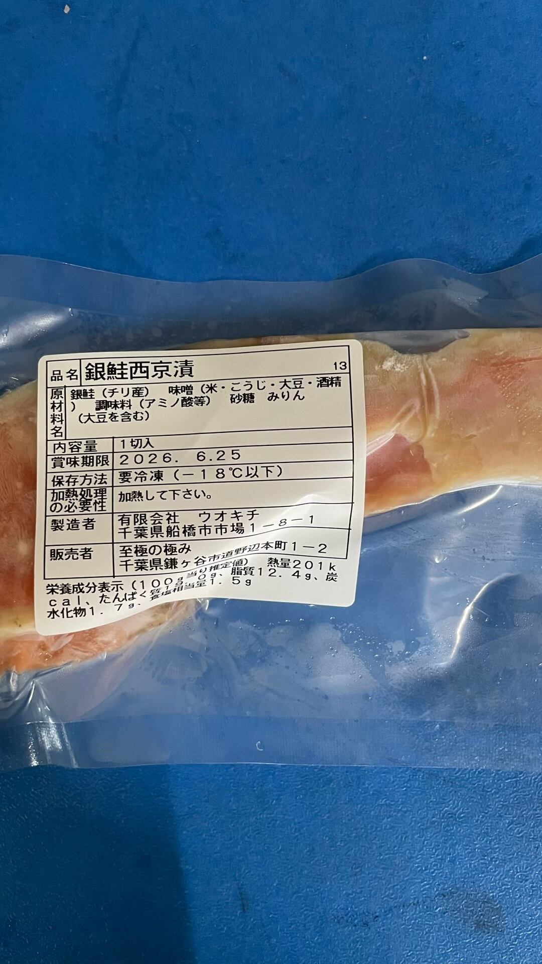 銀鮭(チリ産)味噌(米,こうじ,大豆,酒精)調味料(アミノ酸等)砂糖,みりん